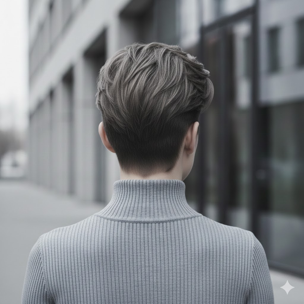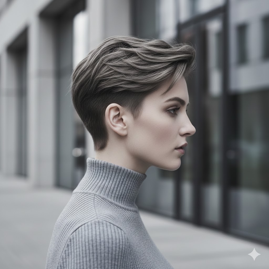Aschbraun ist ein kühler Ton, der besonders bei modernen Pixie-Modellen mit maschinell gekürzten Seiten (Undercut) oder sehr kurzen Varianten perfekt aussieht. Dieses matte und kühle Braun ohne Rotstich schafft die perfekte Balance zwischen maskulin und feminin beim Pixie-Schnitt und kreiert einen minimalistischen, urbanen Stil.
